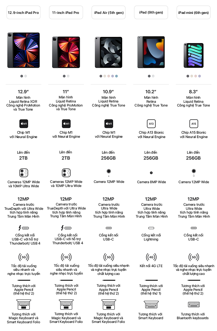• Hỗ trợ Magic Keyboard, Smart Keyboard Folio và Apple Pencil (thế hệ thứ 2)