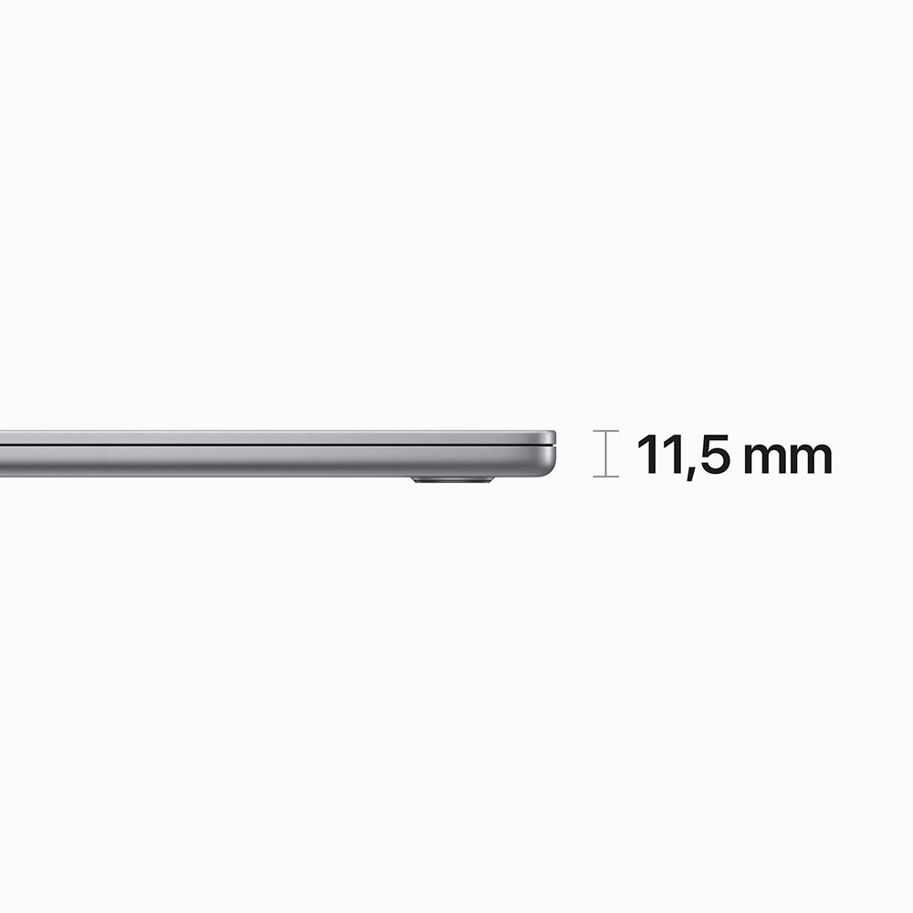 3Màn hình của MacBook Air 15 inch có các góc trên được bo tròn. Khi tính theo hình chữ nhật chuẩn, kích thước màn hình theo đường chéo là 15,3 inch (diện tích hiển thị thực tế nhỏ hơn).